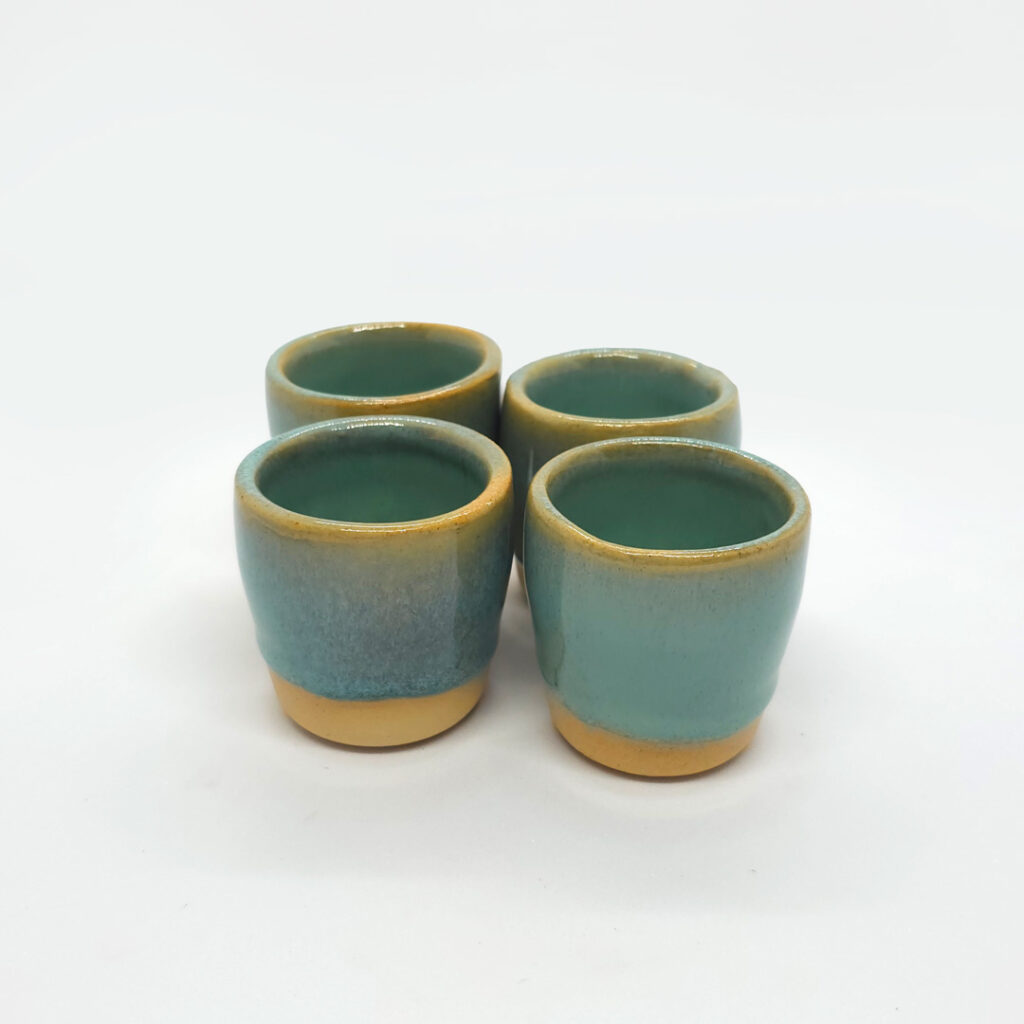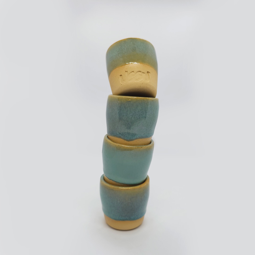 Feitos à mão, estes copinhos traduzem a simplicidade elegante do artesanal. O esmalte em tom verde suave se mistura ao calor da base em terracota, criando um contraste natural e acolhedor. Cada peça carrega pequenas variações que revelam o gesto da artesã e a autenticidade do trabalho coletivo da USSU.