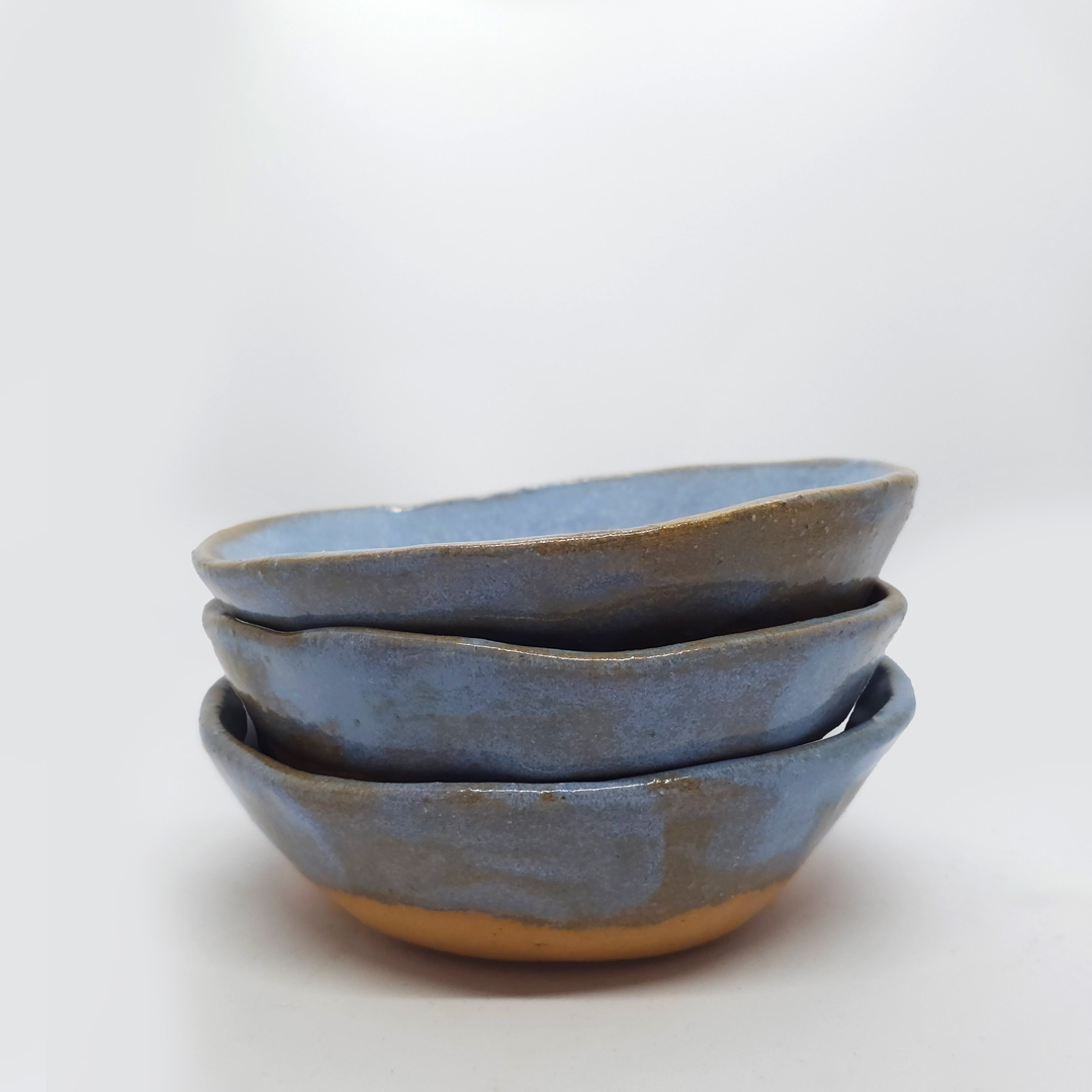Leves e harmoniosas, estas cumbucas artesanais encantam pela simplicidade das formas e pela naturalidade do gesto manual. Moldadas à mão, apresentam bordas levemente irregulares e um esmalte azul suave que transmite serenidade, contrastando com a base em tom de terracota. Cada peça é única, refletindo o equilíbrio entre o espontâneo e o cuidadoso, o artesanal e o contemporâneo.