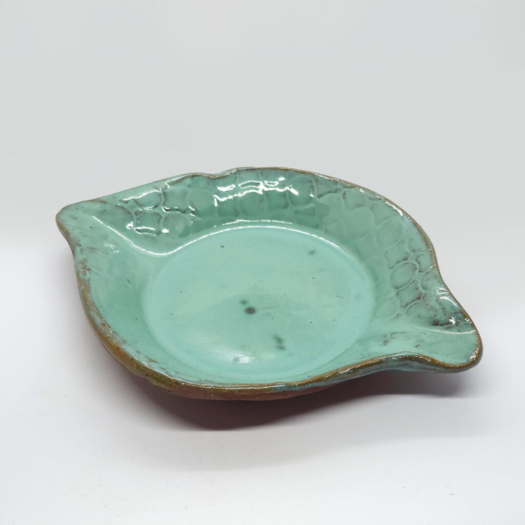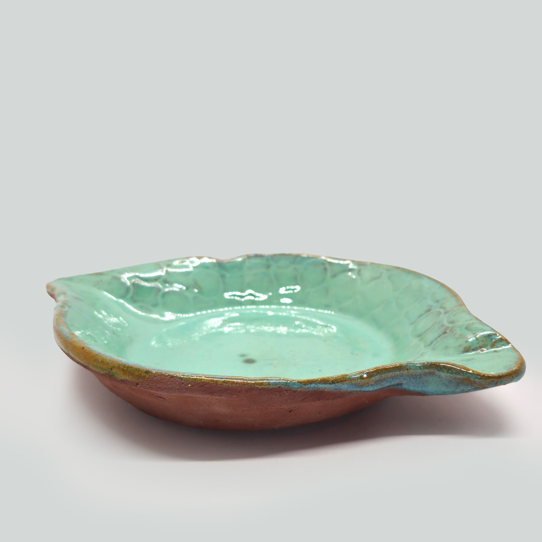 Inspirada na natureza, esta tigela artesanal encanta pela forma delicada que remete a uma folha aberta. Moldada à mão, combina o tom natural da argila com o brilho do esmalte verde suave, destacando texturas sutis que lembram nervuras e veios orgânicos. Uma peça que traduz o encontro entre o fazer humano e a sabedoria da terra, leve e cheia de vida.